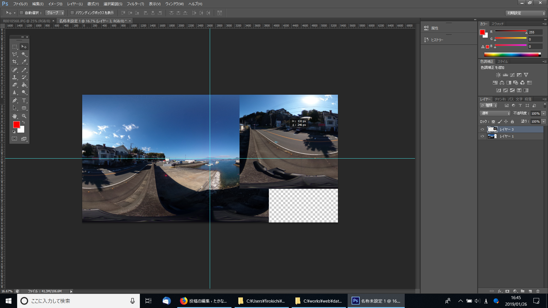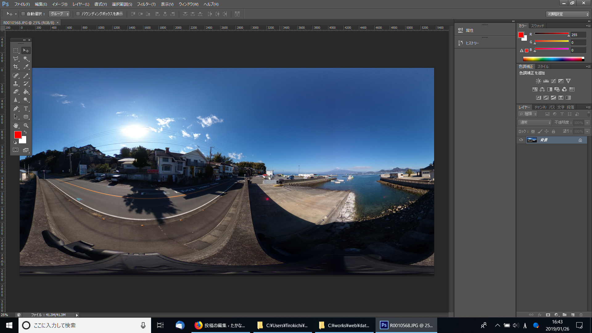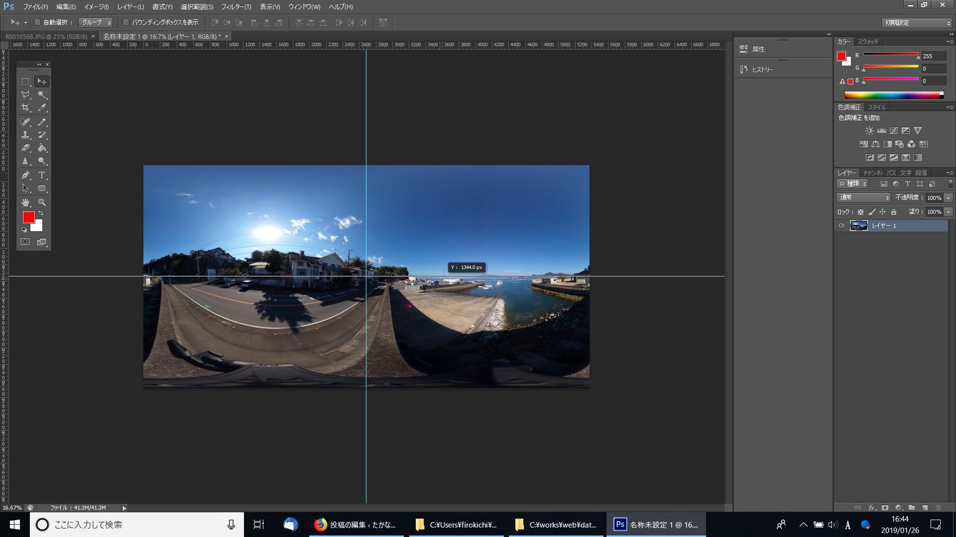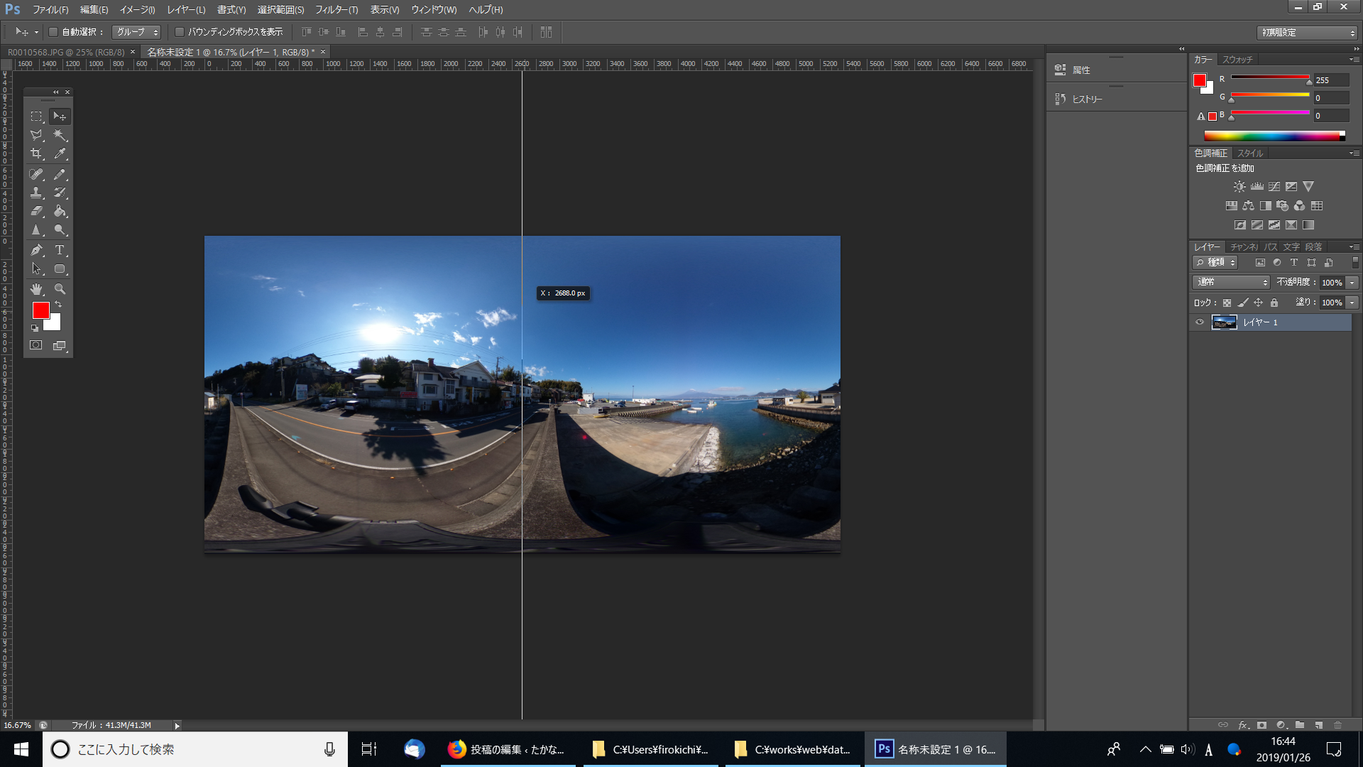 このあと、出来たファイルに360度画像だよー、というタグ付けをして、完成です。